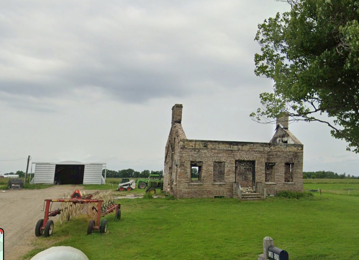'The structure is beyond the John Rodger House. These are in the 'Little Kelso' area. From the Hammond Tour Brochure: Travel down Factory Road another 4/10 of a mile and take a right turn, then a quick left and then a quick right on Route 12 (the Seaway Trail). Drive about 2 and 1/2 miles on this scenic highway and make a right hand turn on to the Triangle Road. Proceed up the hill and travel a little less than a mile. We now enter 'Little Kelso" which is the area settled in 1831 by the children of William Rodger of the village of Kelso in Berwickshire, Scotland. Sons James and John first immigrated to Kingston, Ontario and earned money to bring other members of the family from Scotland. They all acquired the trade of carpenters and masons