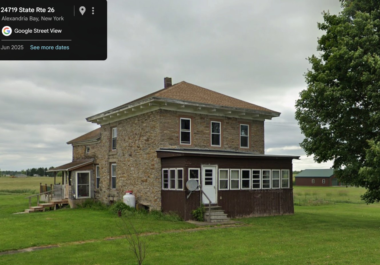 Greatly showing the effects of modernization this old native stone house near Alexandria Center between Plessis and Alexandria Bay is nevertheless close to 110 years old, it is estimated. As purchased by the present owners, Roy C and Regina Hall from Alexander R Shoulette of this city on October 25 1946 it is composed of five principal parcels of 58.26 acres, 43.15 acres, 29.25 acres, 27.5 acres and 16 acres. On November 25 1830 Landowner Francis Depau sold the 58.26 acre parcel to Jonathan Sprague for $61.16 and on April 14 1837 Sprague sold it to Garret Boshart of Lowville, for $638. On January 29 1838 the executors of Depau sold the adjoining 43.15-acre parcel to Garret Boshart, who on November 9 1840 disposed of both of them to William Boshart of Lowville for the nominal $1. On the same day Nicholas Boshart, Lowville, deeded the 29.25-acre plot to William Boshart, Nicholas having acquired it from the Depau heirs January 9 1838. William Boshart purchased the 27.5-acre tract from the Depau heirs February 3 1849 and later he bought two small pieces of .65 of an acre and 16 acres. All five parcels he sold to John L Giltz of the town of Croghan on October 28 1867 for $8,740.50. That price is proof positive that the stone house, barns and other buildings